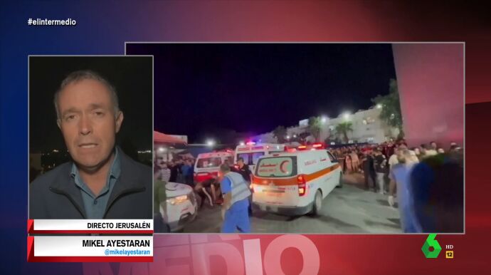 La última hora entre el conflicto de Israel con Hamas pasa por las terribles imágenes del bombardeo israelí sobre un hospital de Gaza en el que han muerto, según fuentes del ministerio de Sanidad de la Franja, podrían haber muerto 500 personas. Además, Irán ha lanzado un ultimátum a Israel diciendo que o cesan los ataques a Gaza o en las próximas horas se producirá una acción militar preventiva. Para conocer la última hora del conflicto, El Intermedio conecta con Mikel Ayestaran, periodista y experto en Oriente Medio.