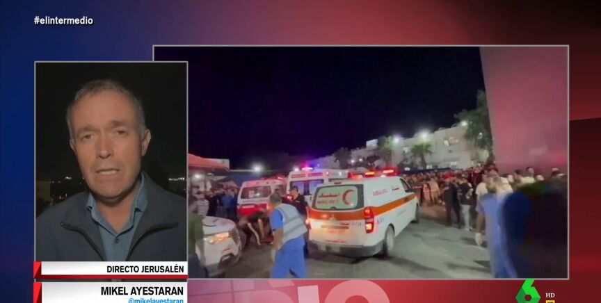 El periodista explica que "pasadas las siete y media de la tarde el ministerio de Salud de Gaza ha informado del impacto directo de un proyectil de un avión israelí contra el hospital Bautista". Este centro forma parte de la iglesia anglicana dentro de la ciudad de Gaza. Como indica Ayestaran, además personas heridas y enfermas también se había llenado de familias que, como añade, "acuden a los hospitales, son desplazados de sus hogares, con la esperanza de que no se les bombardee". El ministerio de Salud de Gaza está dando unas cifras de 200 a 500 víctimas mortales, y ha sido, como explica, "la mayor masacre que se recuerda en Gaza en los últimos tiempos" y que, además, el ataque "ha marcado un punto de inflexión".