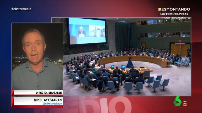 El periodista, y experto en Oriente Medio, Mikel Ayestaran contacta con El Intermedio desde Jerusalén para informar sobre la última hora del conflicto entre Israel y Hamás. En las últimas horas se ha dado un conflicto diplomático entre la ONU e Israel tras unas declaraciones de su secretario general, António Guterres. Como explica el periodista, las palabras de Guterres han sentado muy mal en Israel y mantienen esa petición de dimisión. Como explica Ayestaran, "la relación tirante entre la ONU e Israel se nota cada vez que alguien habla o dice unas palabras que no están dentro de la narrativa que defienden los israelíes".