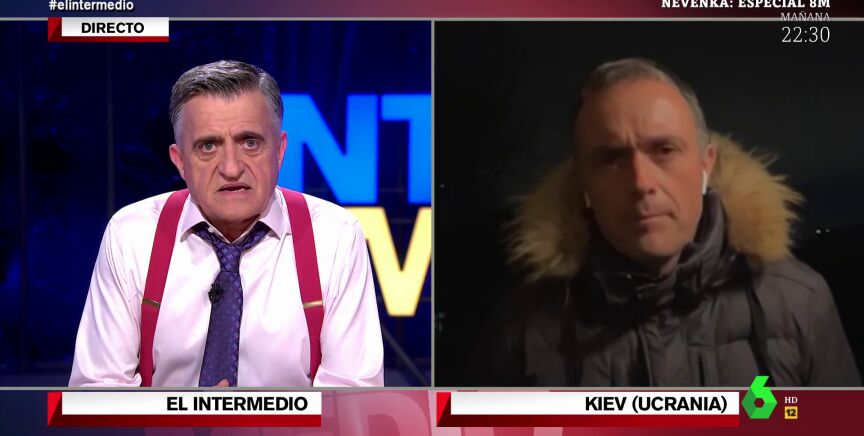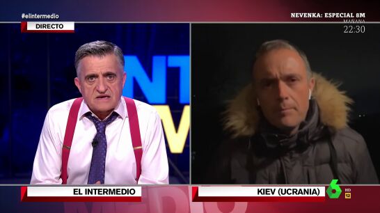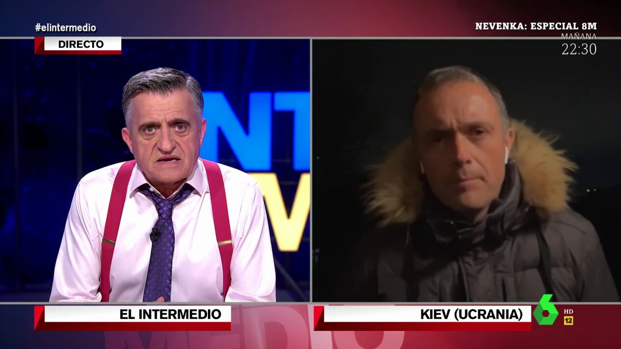 Mikel Ayestaran conecta en directo con el plató de El Intermedio desde Kiev para contar la invasión de Rusia a Ucrania de primera mano. "La ciudad aguanta, pero está a la espera", explica el corresponsal, que afirma que "ya no queda distancia con las tropas rusas" ya que estas "están en los barrios de las afueras tras conquistar las ciudades que les quedaban".