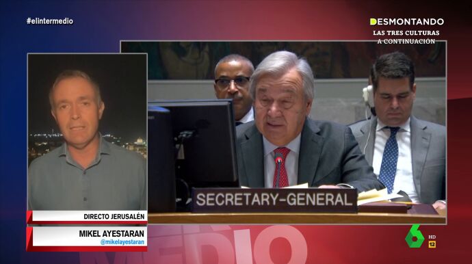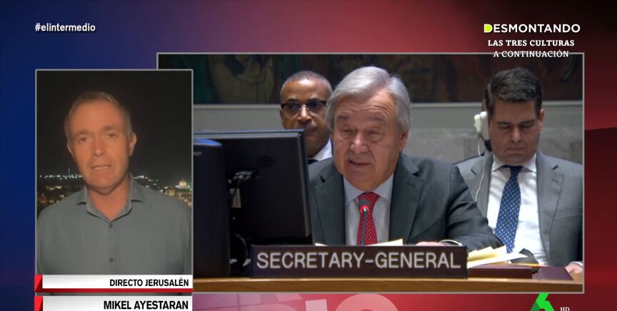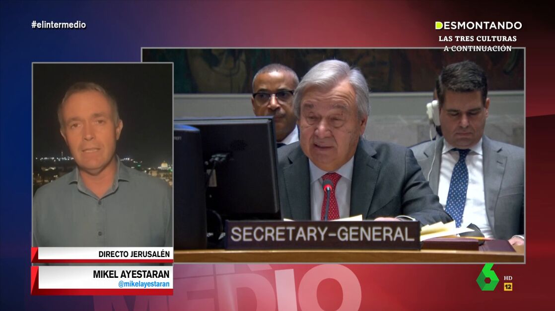 Tras las declaraciones de António Guterres, secretario general de Naciones Unidas, Israel se mantiene en esa petición de dimisión. El periodista ha contactado con algunos miembros de Naciones Unidas que están desplazados en Jerusalén y, como le han dicho a Ayestaran, "no tienen notificación alguna, de momento, sobre sus visados". Como explica, "se nota cada vez que alguien dice algunas palabras que no están de la narrativa que defiende Israel, es lo que le ha pasado a Guterres".