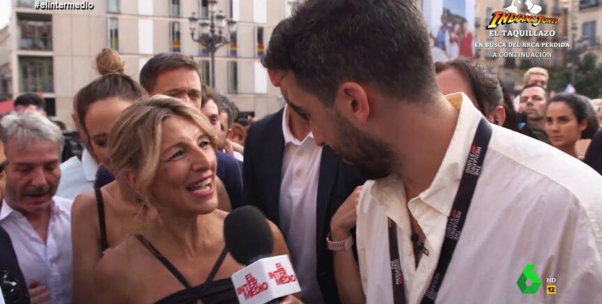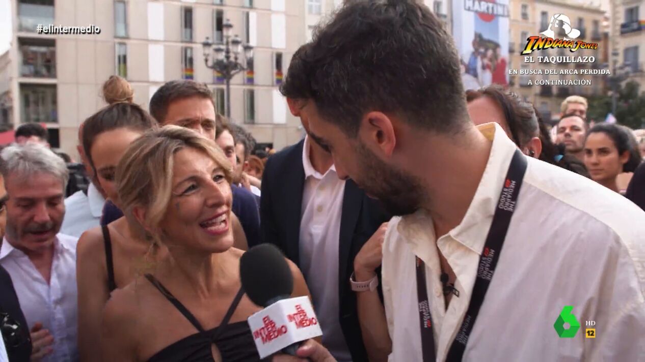 Isma Juárez se topa en el Orgullo LGTBI de Madrid con Íñigo Errejón y Yolanda Díaz, pero solo esta última accede a hablar con El Intermedio. "Estoy metida en el puro jaleo", dice la vicepresidenta del gobierno.