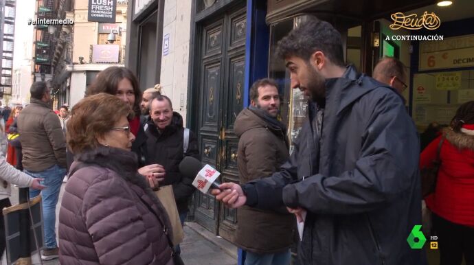 Además, el reportero de El Intermedio ha aprovechado la ocasión de estar grabando el reportaje para intentar llevarse un décimo: "Lo que no pienso es hacer la cola", afirma en el vídeo sobre estas líneas Isma, que decide tirar de recursos y aprovecharse de la buena voluntad de una mujer.