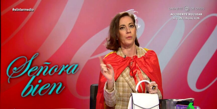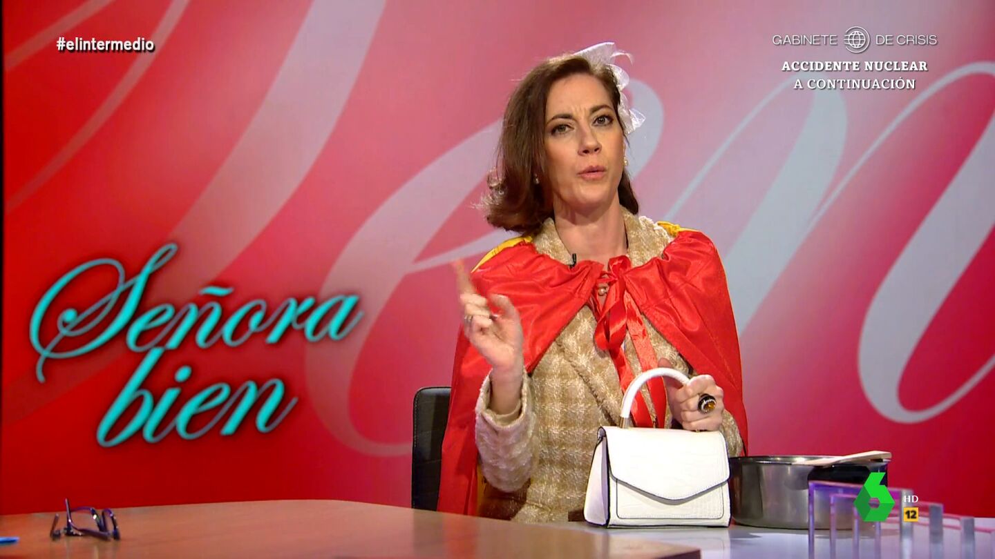'Piluchi', la 'señora bien' interpretada por Cristina Gallego, vuelve al plató de El Intermedio para seguir analizando curiosidades de las protestas frente a la sede del PSOE en Ferraz que aún se suceden. Entre ellas una barbacoa de chorizos en plena calle: "Nos la comíamos con las manos, como la gente sencilla, como Mohamed", comenta.