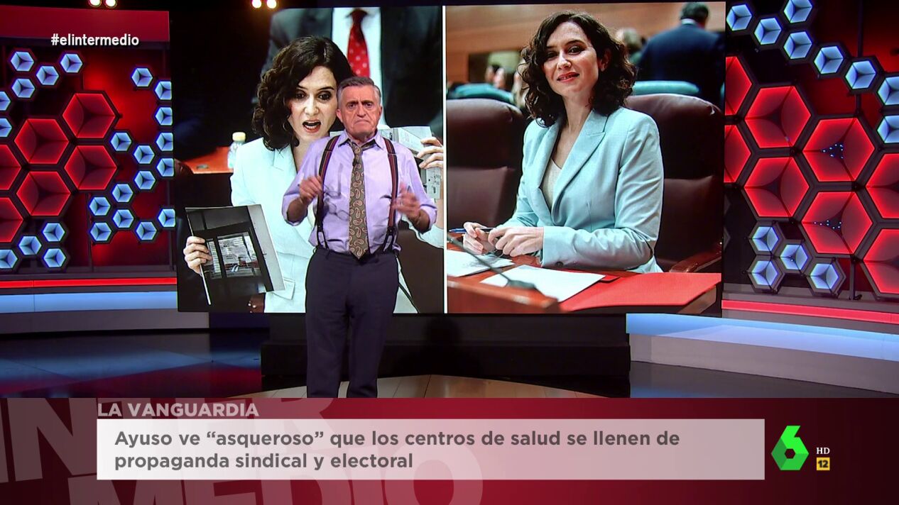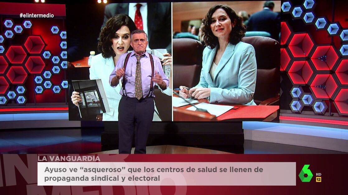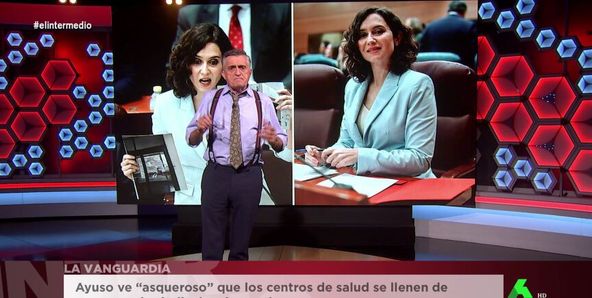 El Gran Wyoming comienza El Intermedio profundizando en un concepto que siempre le pareció "confuso": "El decoro". "Me consuela saber que no soy el único que tiene problemas para comprender este concepto", comenta, ya que este miércoles el Gobierno de la Comunidad de Madrid ha prohibido colgar cualquier cartel en los centros de salud que sirva para informar o apoyar la huelga de los sanitarios "para mantener el decoro". "A la administración de Ayuso les importa mucho el decoro de estos centros", comenta el presentador, y, por eso, "despidieron a 6.000 sanitarios, porque eran unos maleducados que no saludaban de usted".
