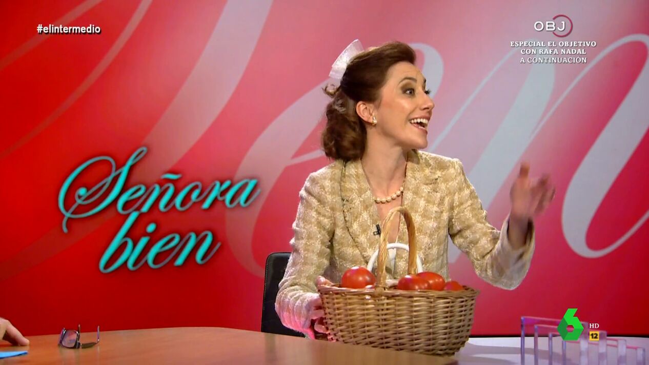 Cristina Gallego vuelve a transformarse en Piluchi, la 'Señora Bien', para comentar las últimas noticias del panorama político actual. 'Piluchi' llega al programa con un regalo de San Valentín muy especial: una cesta de tomates marroquíes. "Es lo único de la huerta que vamos a poder comer en España por culpa de Pedro Sánchez", comenta la 'Señora bien'.