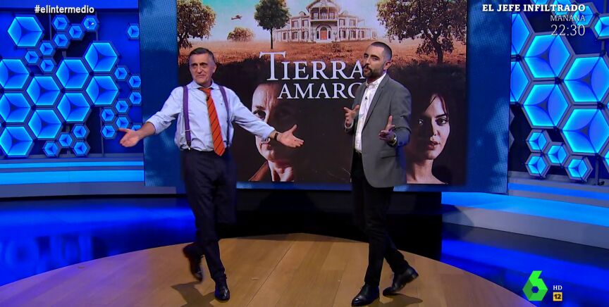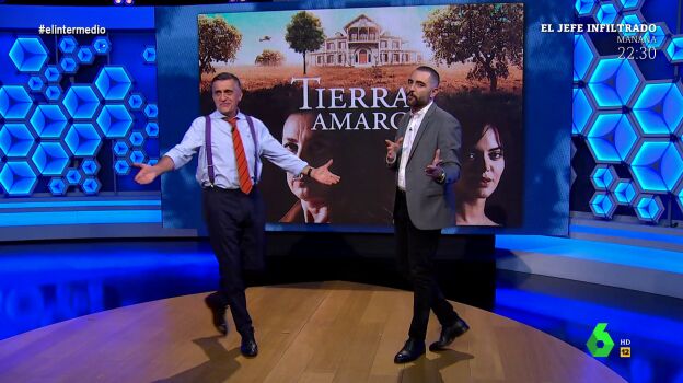 Dani Mateo somete a El Gran Wyoming en El Intermedio a un divertido reto sobre 'Tierra Amarga', una superproducción ambientada en los años 70 que muy pronto estrenará Antena 3.