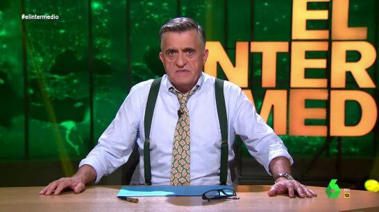 Sandra Sabatés y El Gran Wyoming analizan en el plató de El Intermedio la presentación de la Oficina del Español de la Comunidad de Madrid, el puesto que Isabel Díaz Ayuso creó para Toni Cantó tras las elecciones madrileñas. "¡El Chiringuito, el chiringuito!", comienza a sonar en el plató del programa mientras El Gran Wyoming pide ponerse serio: "Sandra está intentado hacer algo que ni Toni Cantó ni yo sabemos lo que es, trabajar".