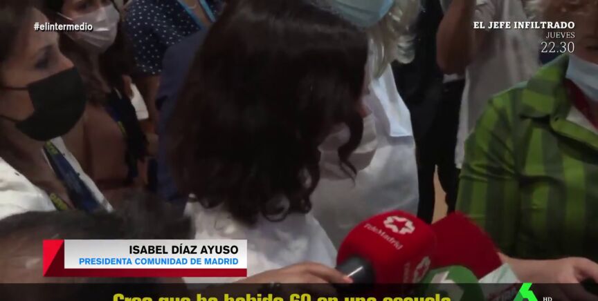 La presidenta de la Comunidad, Isabel Díaz Ayuso, achacaba la vacunación de estos docentes como "algo puntual", pero algo más llamaba la atención del presentador de El Intermedio. El Gran Wyoming no tardaba en hacer un comentario tras las palabras de la presidenta. Puedes verlo en el vídeo principal de esta noticia.