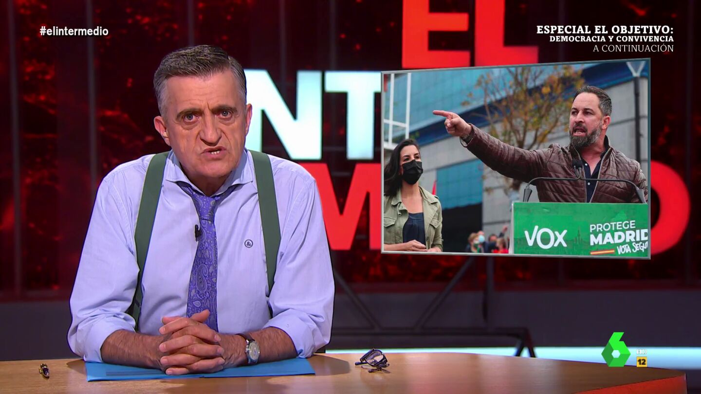 El Gran Wyoming analiza en este vídeo la actitud de Voxante las amenazas recibidas a varios políticos y manda un tajante mensaje a Ayuso, que no descarta gobernar con el partido de Abascal en Madrid.
