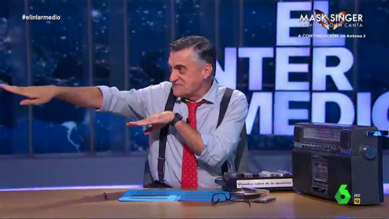 Acompañado tan solo con una base, El Gran Wyoming se atreve a reproducir en El Intermedio el karaoke de los grandes éxitos de la oposición: "Repletos de hits liberales y muy españoles".