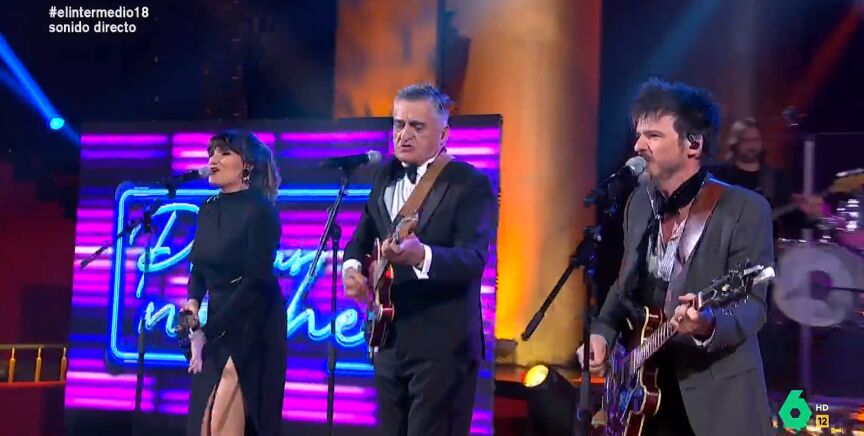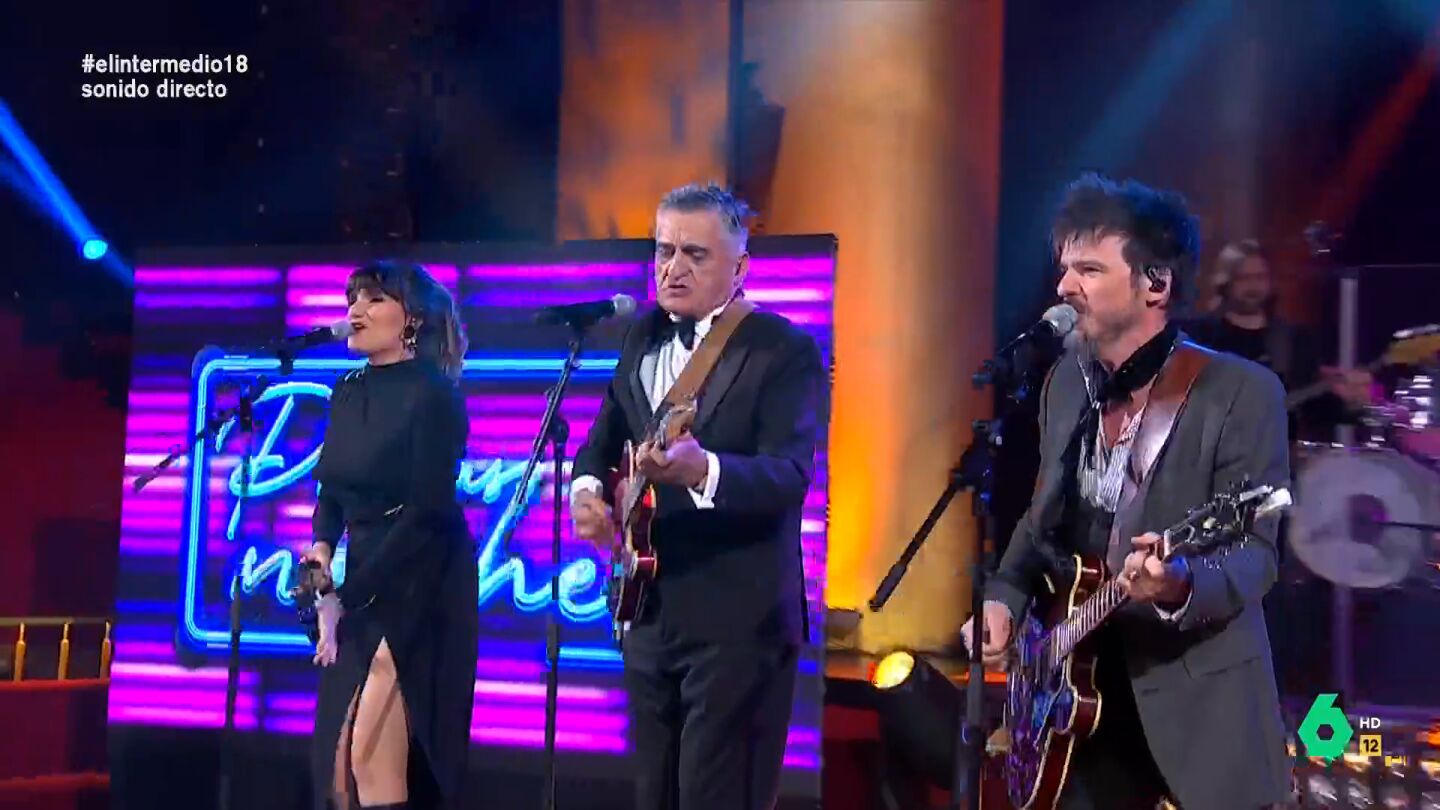 El trío ha interpretado el tema 'Por las noches' de Los Ronaldos, grupo del que Coque fue vocalista. Tanto el cantante como el presentador han tocado, además, la guitarra. Wyoming se ha animado también ha cantar junto con Malla y Rozalén. "Y por las noches haremos lo de siempre, porque nos gusta y porque nos divierte", reza la canción que interpretan a conjunto.