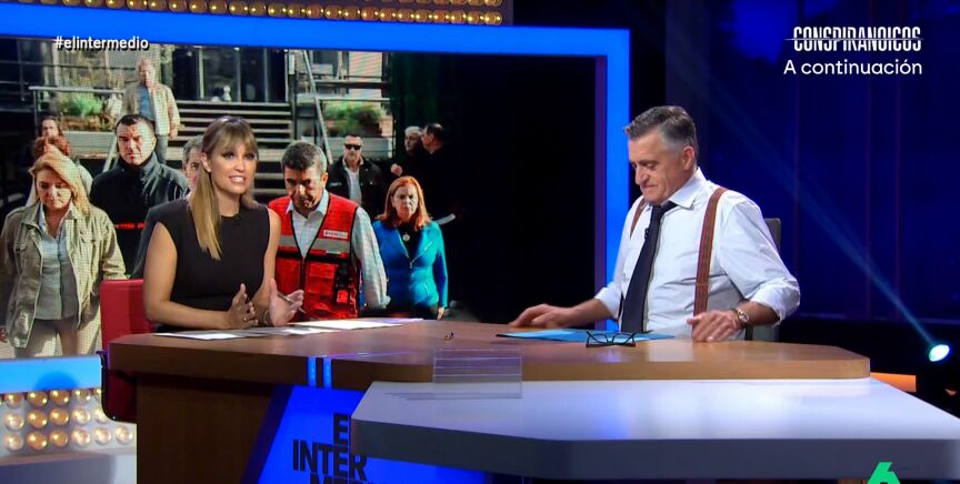 Desde el plató de El Intermedio, Sandra Sabatés responde al líder de los populares con estas "dos consideraciones": "Las alertas climatológicas son una competencia autonómica y la AEMET avisó a primera hora de la mañana de que la zona de la tragedia estaba en el nivel máximo de alerta, que se da en caso de riesgo extremo". "Entonces, ¿me estás diciendo que Feijóo está mintiendo?", pregunta El Gran Wyoming en el vídeo principal de la noticia.