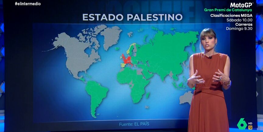 Es por eso que Sandra Sabatés se traslada al pantallón para recordar cuáles son los que ya lo han reconocido, lo que supone "el primer paso para alcanzar la solución de los dos Estados". Una solución por "la que apuesta, desde hace décadas, la comunidad internacional".