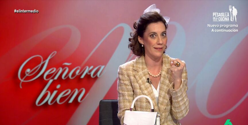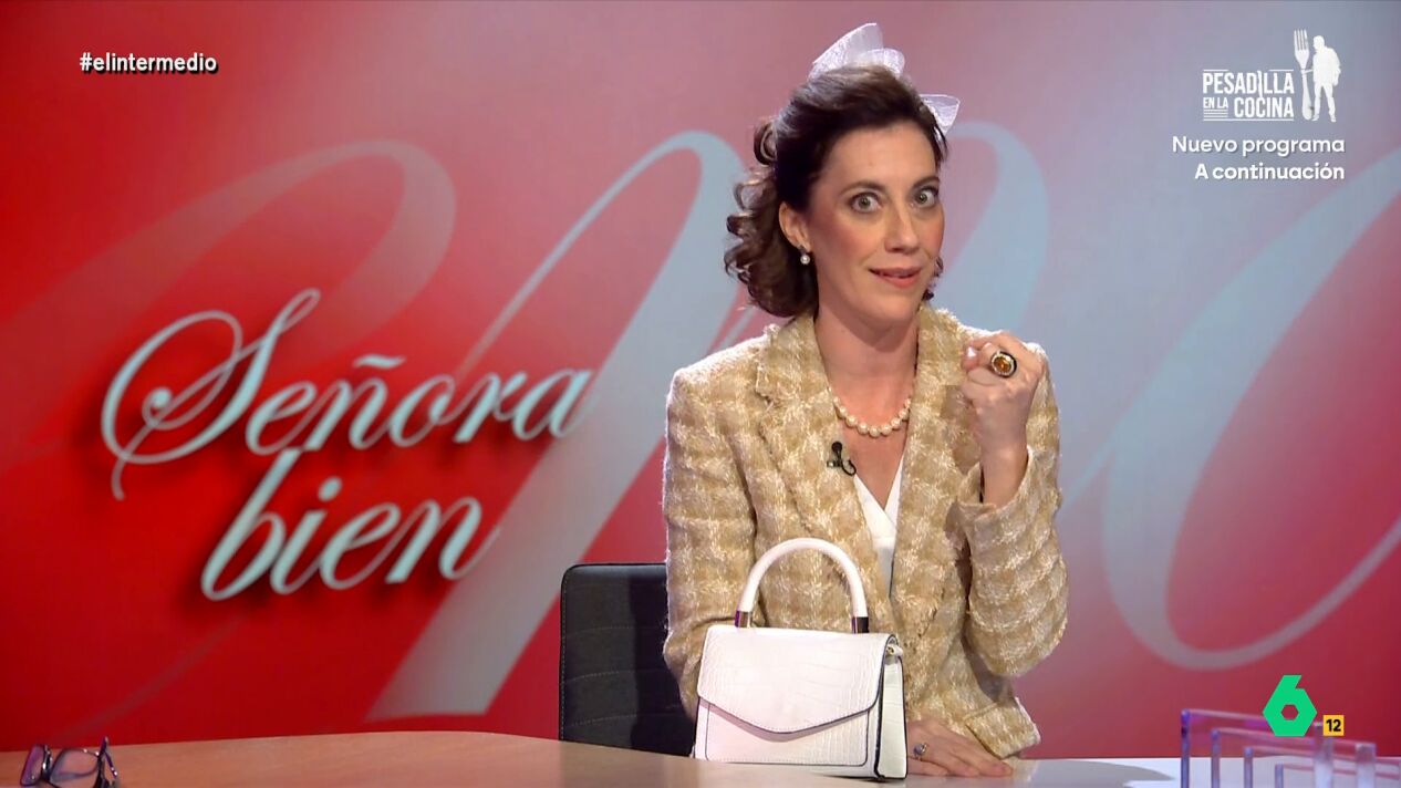 La 'señora bien' vuelve a El Intermedio para comentar el tema del momento: los audios de Juan Carlos I y Bárbara Rey. Cristina Gallego da vida a la ultracatólica para defender al emérito.