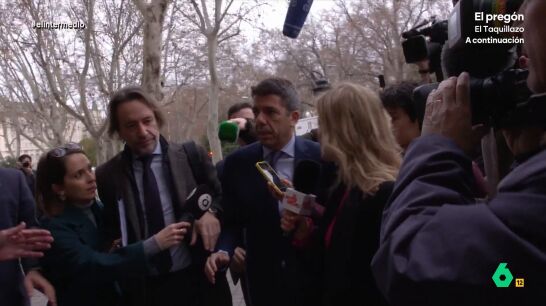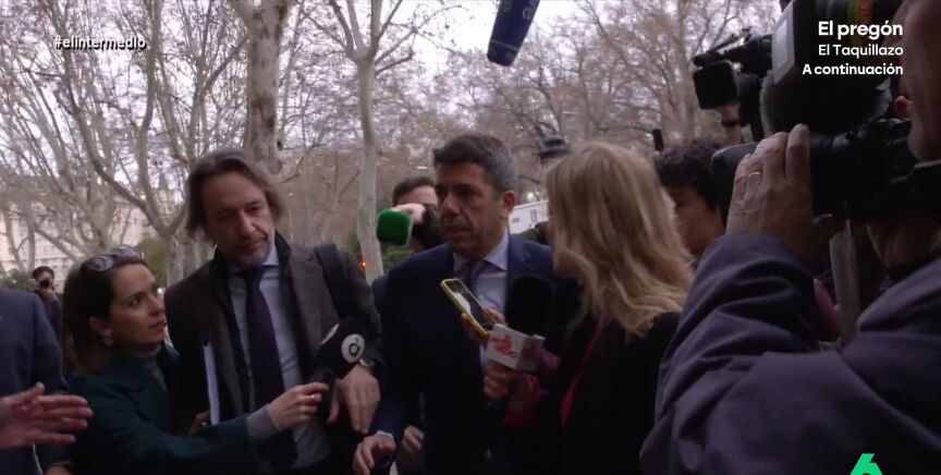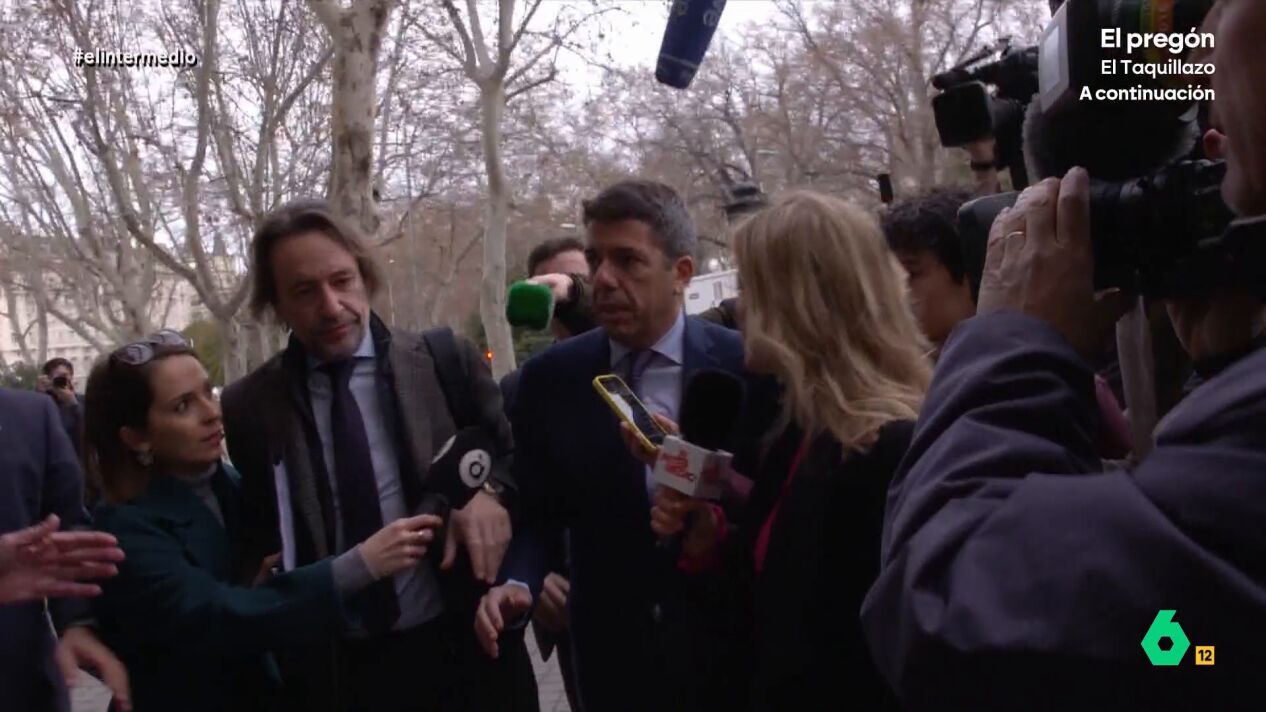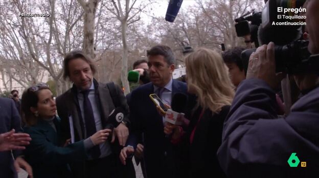 A su salida, y después de presentarse como un daño colateral de la DANA, la reportera de El Intermedio volvió a plantearle varias preguntas incómodas: "¿Ser un daño colateral es estar ilocalizable en lo peor de la DANA? ¿Teme tener que responder judicialmente? ¿Por qué no asistió a la Cridà? ¿Tanto miedo tiene a los valencianos?". La respuesta de Mazón, en el vídeo sobre estas líneas.