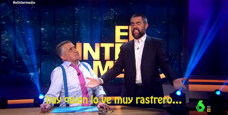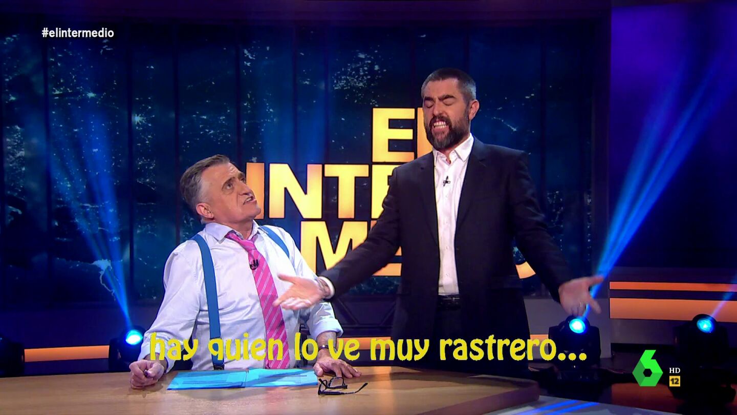 "En cualquier caso, parece que la decisión está tomada y ya no hay nada que hacer sobre la marcha en esta empresa", espeta El GranWyoming. Es justo en ese momento cuando Dani Mateo irrumpe en el plató y asegura que "sí se puede hacer algo": "Despidamos a Ferrovial como se merece, con una serenata", y pide a Wyoming que cante con él.
