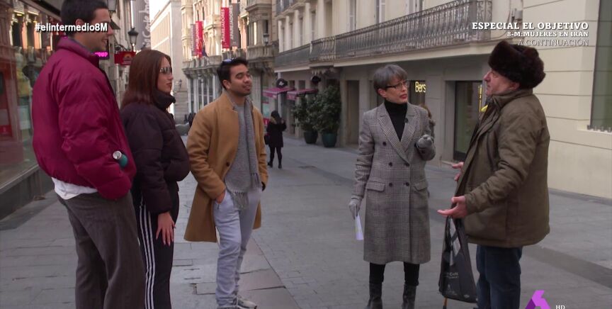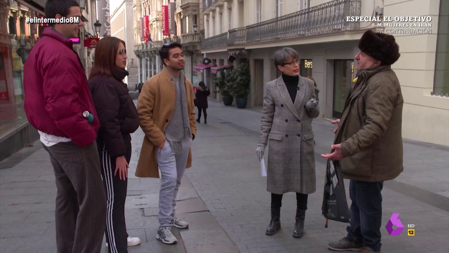 Un señor directamente afirma que las mujeres feministas son "feminazis", algo que indigna tanto a la reportera como a las mujeres que se encuentran en el debate. Una de las chicas presentes denuncia la violencia machista que sufren las mujeres: "Yo sigo caminando por la calle y me siguen acosando, me han perseguido, agarrado del brazo...es el pan de cada día". "A mí también me han acosado", responde el mismo señor.