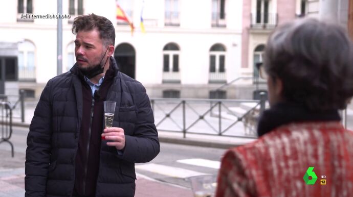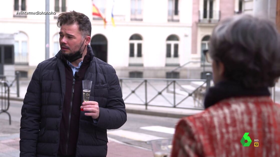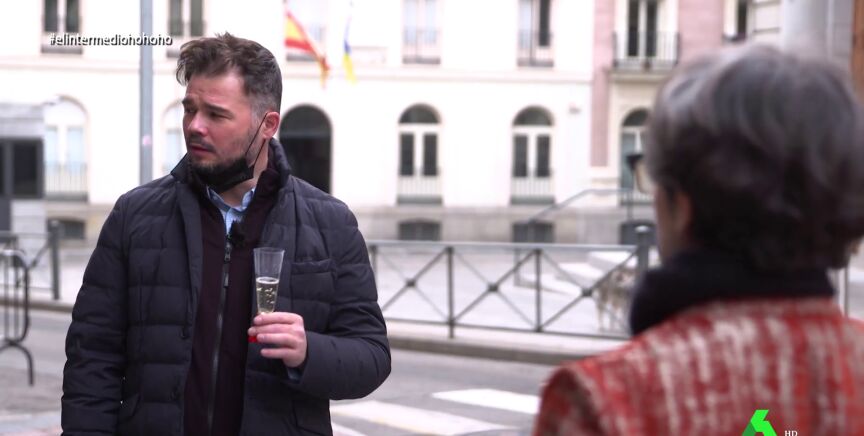 La reacción de Rufián al brindar con Thais Villas: "Un poco justo. Esto lo paga Wyoming, ¿no?"