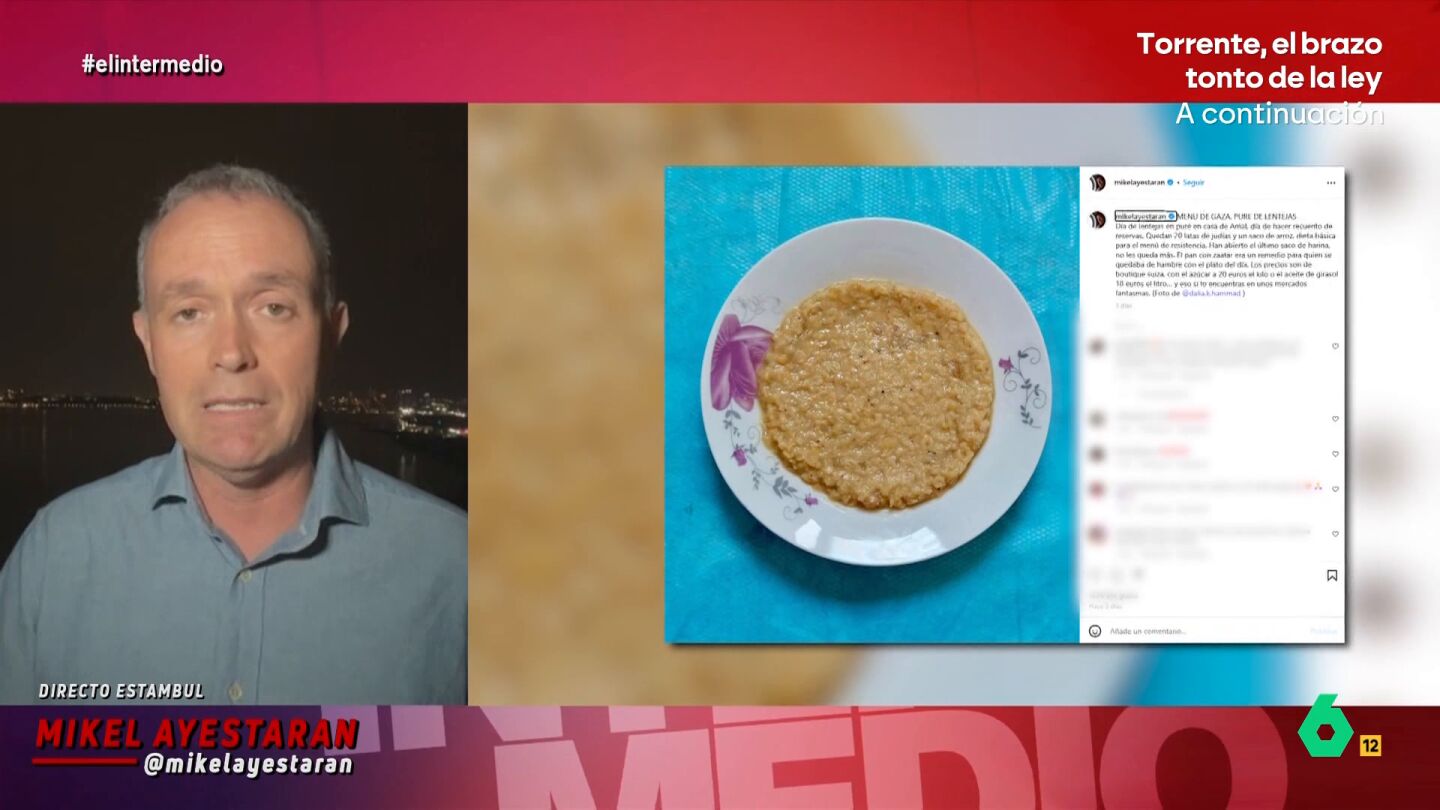 Mikel Ayestaran comparte en sus redes el menú diario de un hogar gazatí: "Israel usa el hambre como arma de guerra"