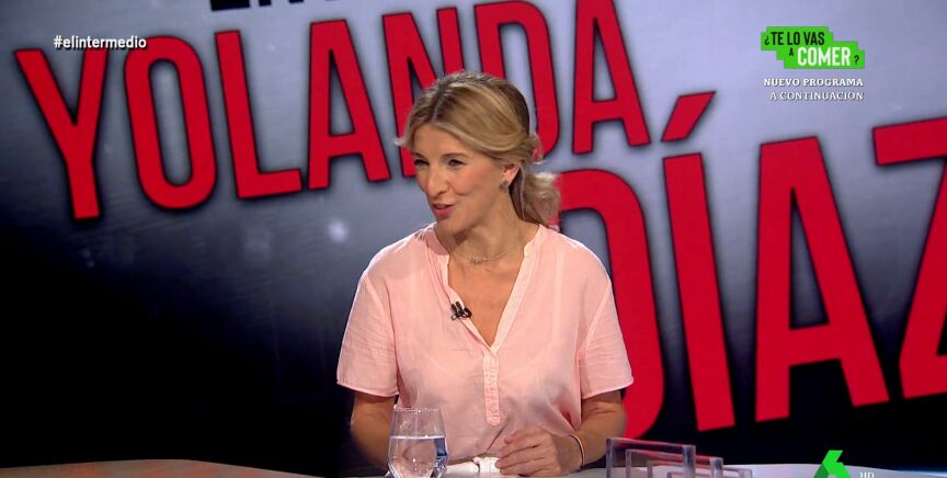 Yolanda Díaz ha visitado el plató de El Intermedio, donde ha conversado con Sandra Sabatés y El Gran Wyoming sobre el feminismo y Vox o los roces entre PSOE y Podemos en el Gobierno y donde ha explicado una de sus medidas estrella: la reducción de la jornada laboral.