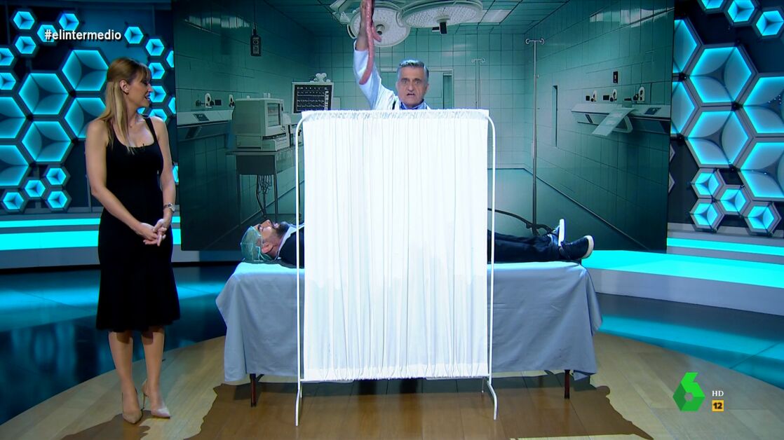 El doctor Wyoming recibe a un paciente, Dani Mateo, en su consulta para operarle. "Llevo 35 años esperando, cuando tenía nueve pedí cita para operarme de fimosis y por fin ha llegado el día", cuenta el paciente. Mientras el doctor se pone a 'operar' al paciente, Sandra expone que, en cuanto a las Comunidades Autónomas, Extremadura, Andalucía y Cantabria, son las que acumulan un mayor tiempo de espera quirúrgica. Por el lado contrario, "los territorios en los que menos se espera para pasar por quirófano son País Vasco y Madrid, con 51 y 63 días, respectivamente", añade.