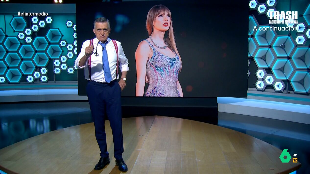 El Gran Wyoming señala que este miércoles ha sido uno de esos días cargados de información en el que la gran protagonista ha sido Taylor Swift, que celebra un concierto en el estadio Santiago Bernabéu, en Madrid.