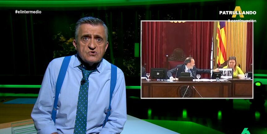 Wyoming se traslada hasta el pico de la mesa para reflexionar sobre el lamentable episodio del presidente del Parlament balear por Vox, Gabriel Le Senne, al romper las fotos de tres mujeres fusiladas por el franquismo: "La imagen del presidente de un parlamento rompiendo la foto de víctimas de una dictadura no podría ocurrir en ningún país de nuestro entorno", asegura Wyoming, que en el vídeo sobre estas líneas recuerda que "la Europa moderna se construyó sobre un principio básico, la lucha contra el fascismo".