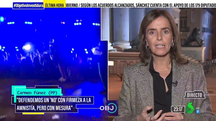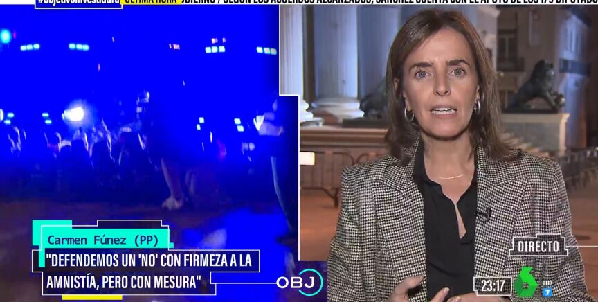 Tras ello, al ser preguntada en El Objetivo por la espantada de Vox del Congreso, la vicesecretaria del PP ha evitado hacer valoraciones sobre la salida de los de Abascal: "No voy a juzgar lo que haga Vox, nosotros vamos a defender el no a la amnistía. Lo que hagan otros tendrán que ser ellos los que respondan. El PP cumple con su responsabilidad, que respeta a las instituciones y yo puedo responder de lo que hacemos nosotros".