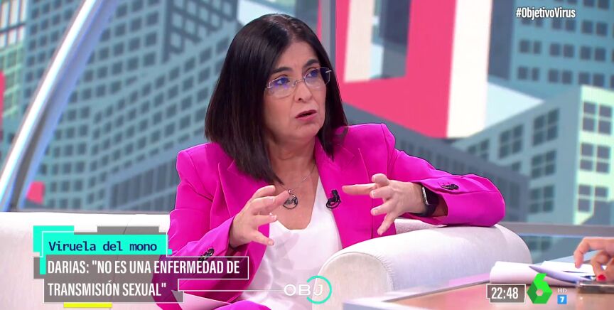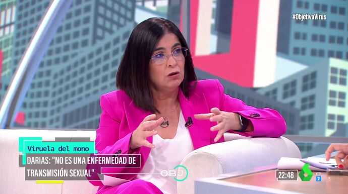 España estudia más de una veintena de casos sospechosos de la 'viruela del mono', un virus del que ya se han registrado casos en países como Suecia, Estados Unidos, Reino Unido o Portugal. En El Objetivo, la ministra de Sanidad, Carolina Darias, ha explicado cuál es el protocolo a seguir en el caso de detectar los síntomas de esta enfermedad.