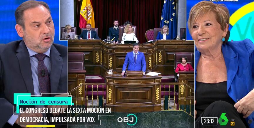 José Luis Ábalos y Celia Villalobos han mantenido un intenso debate en laSexta, recordando cómo fue la moción de censura de Pablo Iglesias contra Mariano Rajoy.