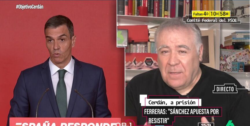 Antonio García Ferreras ha afirmado en El Objetivo que Pedro Sánchez "sigue aferrado a la estrategia de resistir y aguantar salga lo que salga y aparezca lo que aparezca". "Él no se va a ir salvo que le echen como él echó a Mariano Rajoy, en una moción de censura desde el Parlamento", ha señalado el periodista.