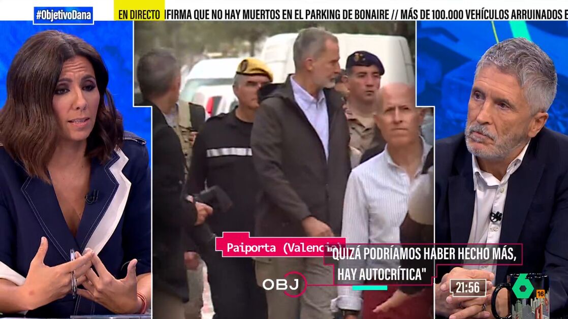 El ministro del Interior ha repasado en El Objetivo como fue la visita de los reyes y los presidentes Mazón y Sánchez ha Paiporta, para mostrar su solidaridad con las víctimas de la DANA.