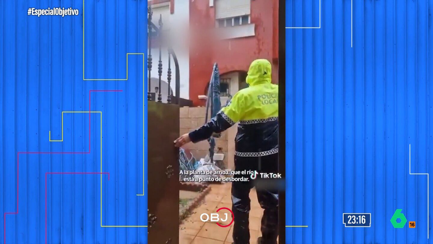 La fundadora de Newtral.es y presentadora de El Objetivo, Ana Pastor, ha repasado durante el programa cómo han advertido las distintas administraciones a sus ciudadanos sobre los distintos niveles de alerta y cómo estas han evitado riesgos. Pastor se ha detenido a analizar un vídeo en el que se puede ver a un Policía Local de Campanillas (Málaga) advirtiendo a los vecinos puerta por puerta. "Buenas, el río está punto de desbordarse, a las plantas de arriba. Si tenéis grupo de WhatsApp con los vecinos haced el favor de pasarlo, comuníquenlo si pueden. Gracias", ha indicado el oficial.