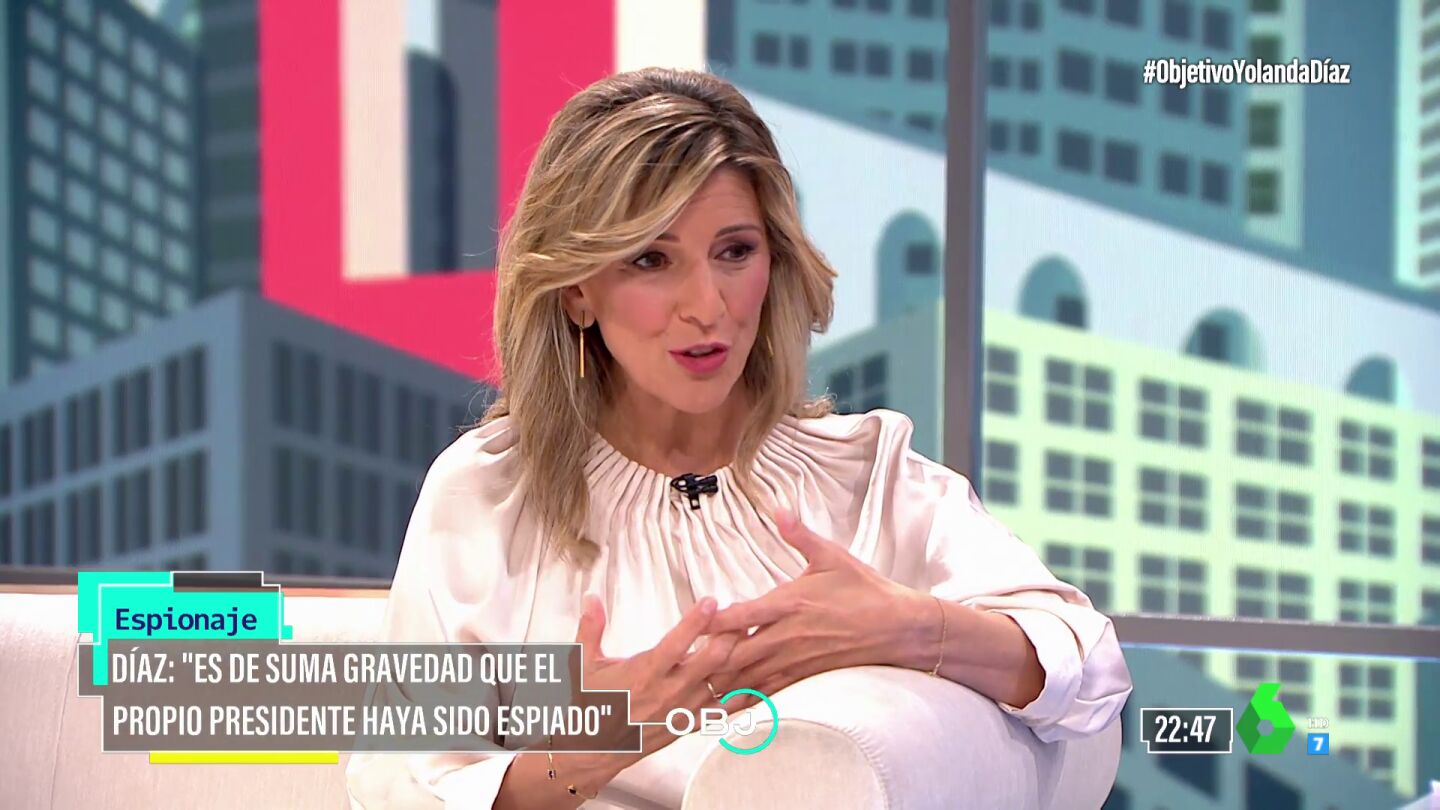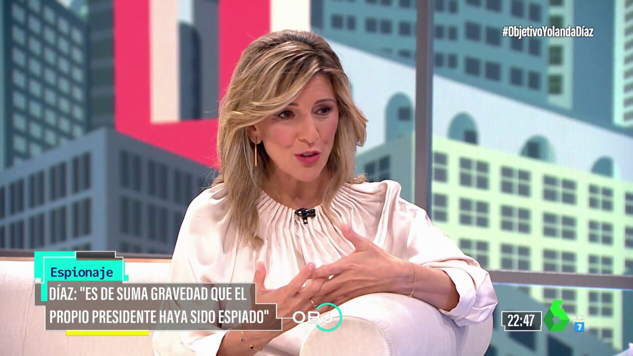 La vicepresidenta segunda del Gobierno y ministra de Trabajo, Yolanda Díaz, ha considerado "de suma gravedad" que el presidente del Gobierno, Pedro Sánchez, y la ministra de Defensa, Margarita Robles, hayan sido espiados. Pero también tiene en consideración a los líderes independentistas que han sido objeto también de esta infección en sus móviles.