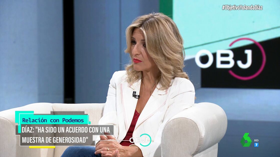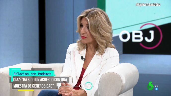 Un hecho sorbe el que Díaz ha evitado pronunciarse en El Objetivo: "Dejemos de hablar de nosotras mismas, la gente lo que quiere es que hablemos de las propuestas. Todas las compañeras, Irene Montero, Alberto Garzón, Jauma Asens, Ada Colau... los proyectos son colectivos, y todas son valiosísimas, por eso yo agradezco la generosidad de todas las formaciones políticas". Formaciones, ha remarcado, que "han suscrito este acuerdo".