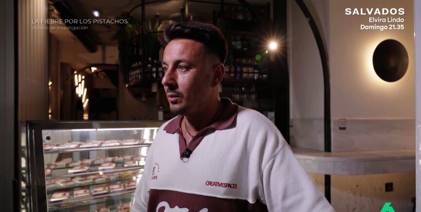 "Fui rápido, uno de los primeros en traerlo a España", afirma Cristian, que explica que todas sus tabletas cuentan con pistacho "100% puro" que importa desde Italia porque, aunque asegura preferir el producto nacional, "los precios son desorbitados".