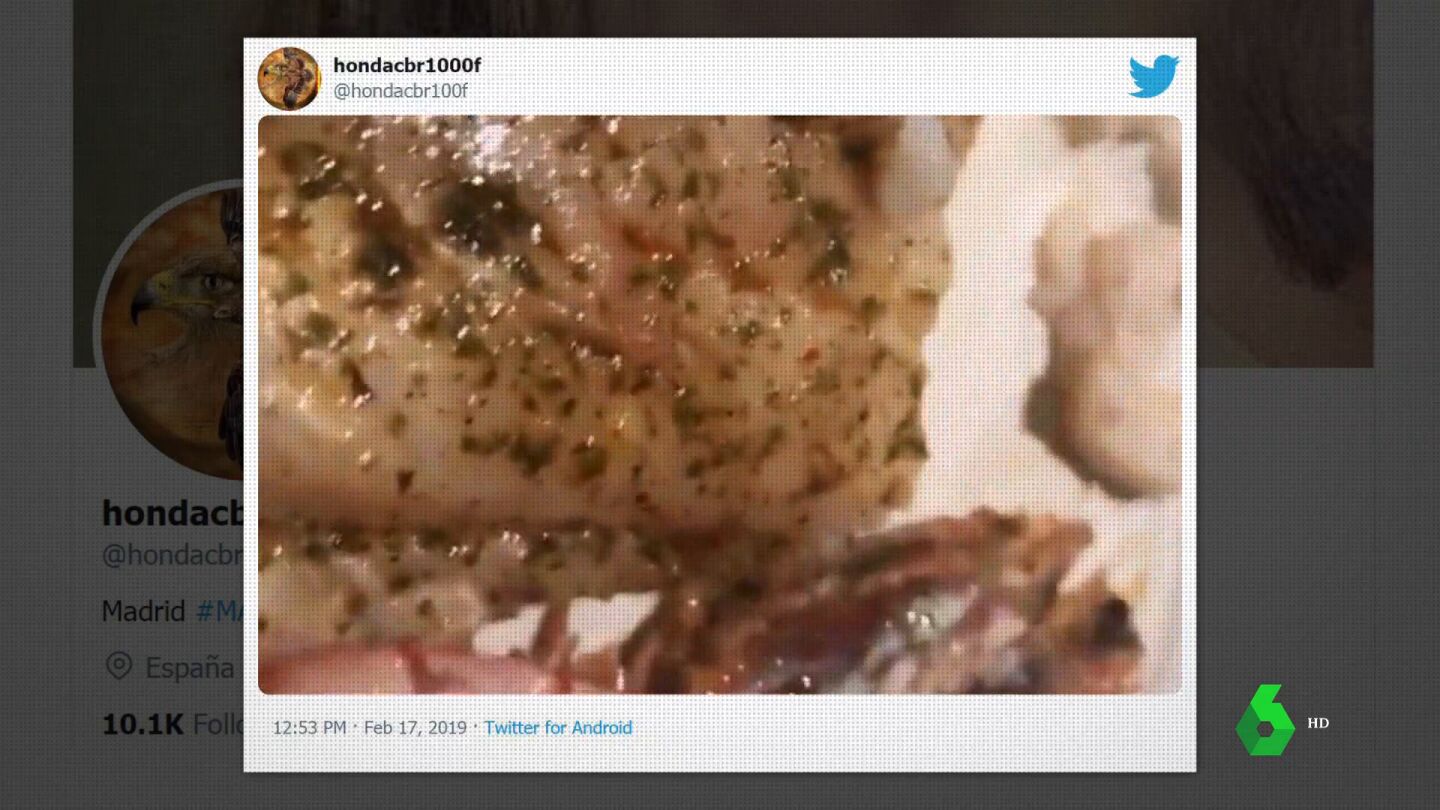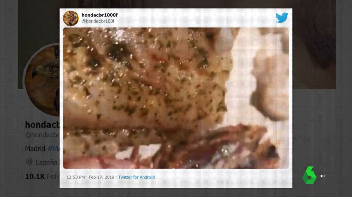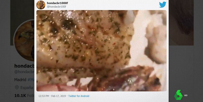"Menos mal que mi hija la vio antes de que nos lo comiéramos", relata la comensal. El vídeo fue emitido en un reportaje que Equipo de Investigación estrenó en 2020 y que laSexta ha vuelto a emitir este domingo.