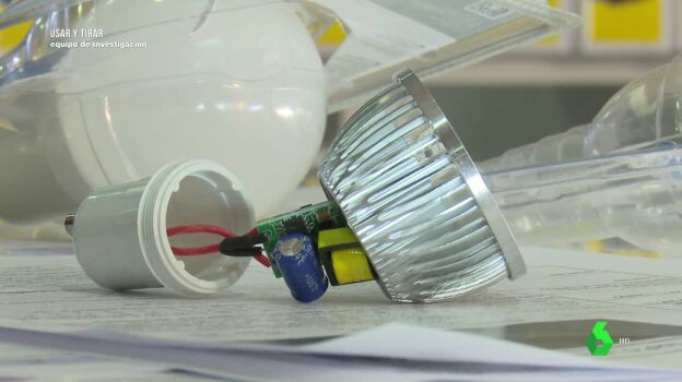 A pesar de que en la información de la caja de determinadas bombillas se puede leer que duran 25.000 horas, la vida útil de sus componentes es muchísimo menor, como mostró Equipo de Investigación en un programa de 2019 que laSexta ha vuelto a emitir este sábado.