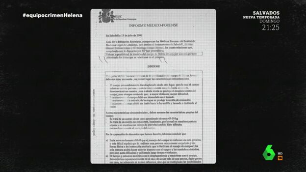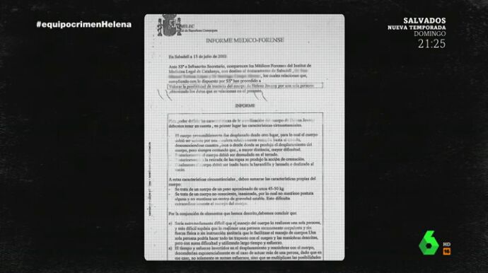 Dos semanas después de la aparición del cuerpo, el informe toxicológico desvela que a Helena la drogaron antes de morir. En su cuerpo encontraron en altas dosis Lormetazepam, Alprazolam y Midazolam, algunos de ellos usados para sedar en la UCI.