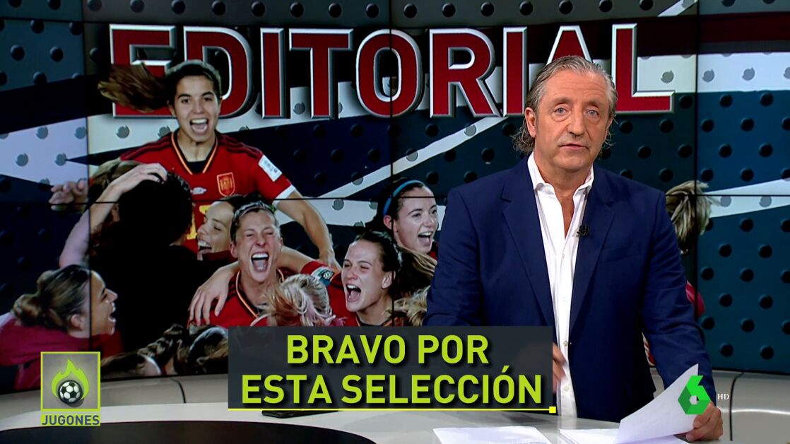 "Bravo por esta selección, vosotras representáis a todas las mujeres de este país, a todas aquellas mujeres que han luchado y siguen luchando por sus derechos", comenzó su editorial en 'Jugones' Josep Pedrerol dedicado a la selección española femenina.