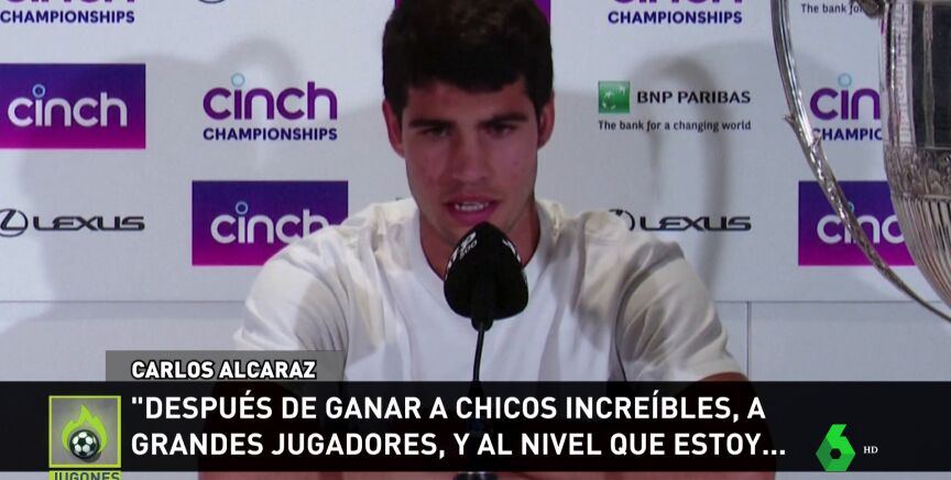 El tenista español sabe que la principal piedra, o más bien montaña, que se interpone entre él y Wimbledon es Novak Djokovic. Alcaraz lo sigue viendo como el principal favorito : "Las opciones no cambian mucho porque allí jugará Djokovic".