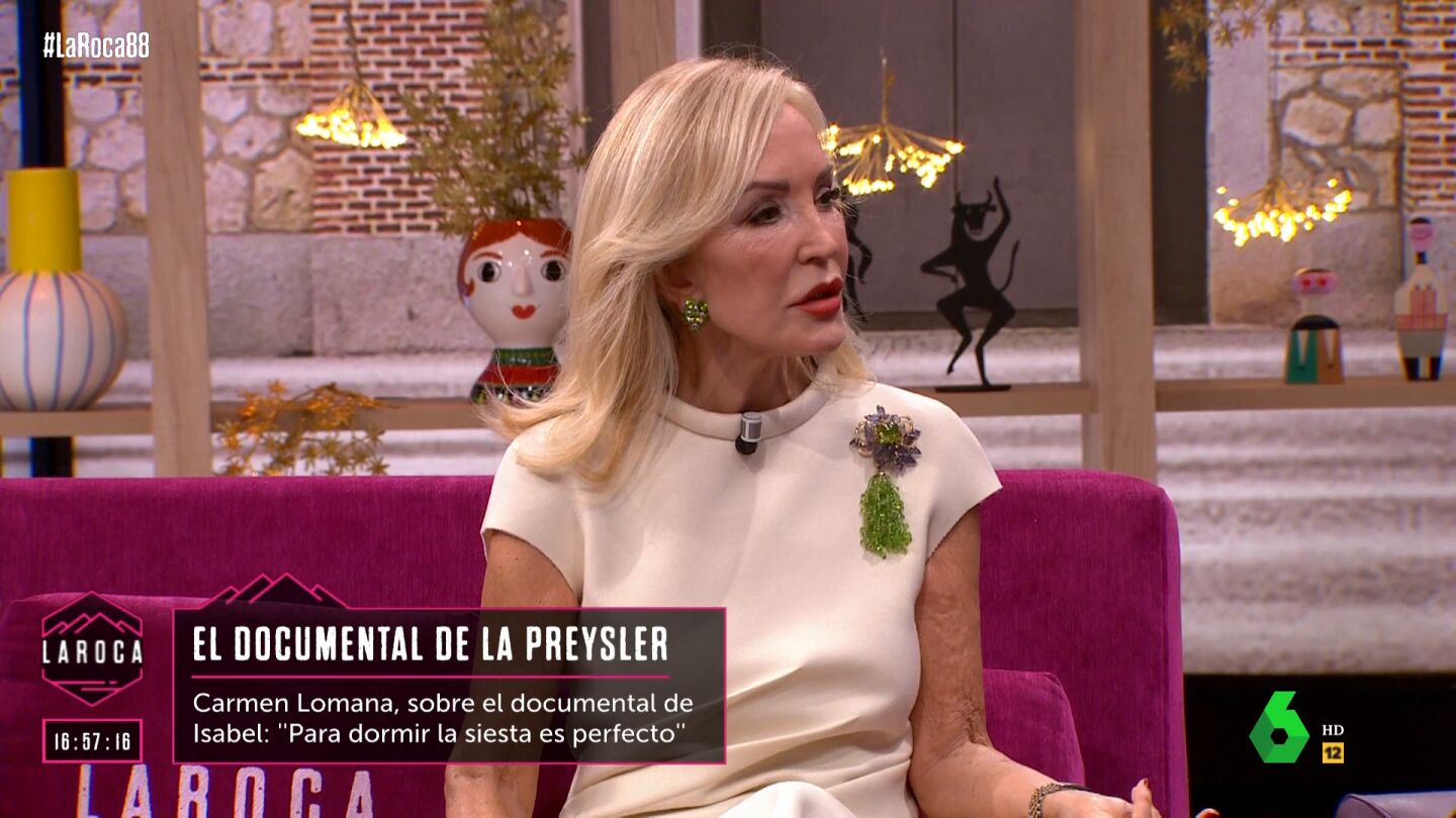 Carmen Lomana reconoce en 'La Roca' que el documental de Isabel Preysler es "muy plano", pues señala que esta "no ha contado nada de su vida" y apunta que al personal de servicio "les van a dar el Oscar porque son los que más salen".