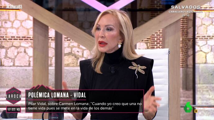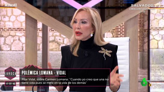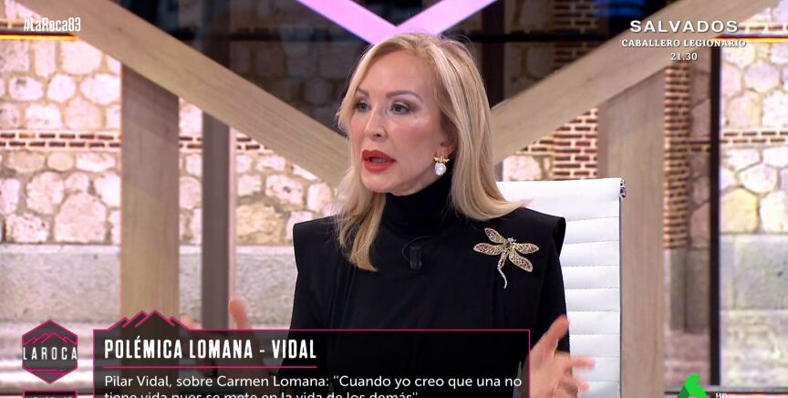 Carmen Lomana se defiende en La Roca y asegura que nunca llamó gorda a Pilar Vidal: "Ha sido una mentira sustentada y repetida". "Puedo llamarte cualquier barbaridad menos gorda, es la palabra prohibida", asevera.