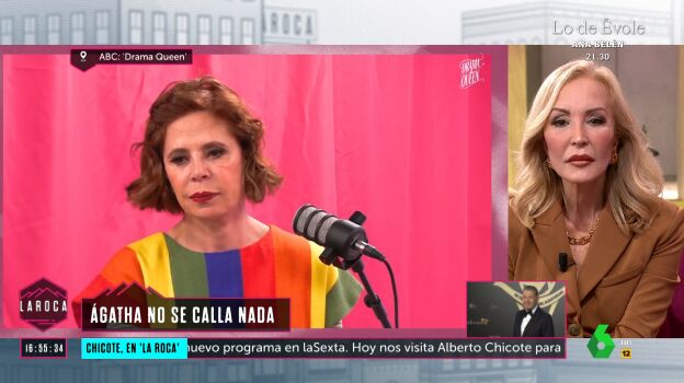 Carmen Lomana se sienta, una tarde más, en el plató de La Roca para hablar de Ágatha Ruiz de la Prada. En esta ocasión, lo hace sobre unas polémicas palabras de la diseñadora que dijo en el podcast de Pilar Vidal, donde aseguró que su "criterio" es que no quiere "cenar con chicas".