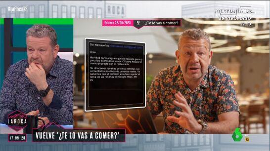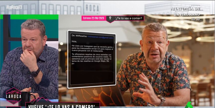 "Puedo comprar las reseñas cinco estrellas que yo quiera y también las negativas del negocio de enfrente", advierte Alberto Chicote en este vídeo de 'La Roca' sobre las reseñas, protagonistas de la nueva entrega de '¿Te lo vas a comer?'