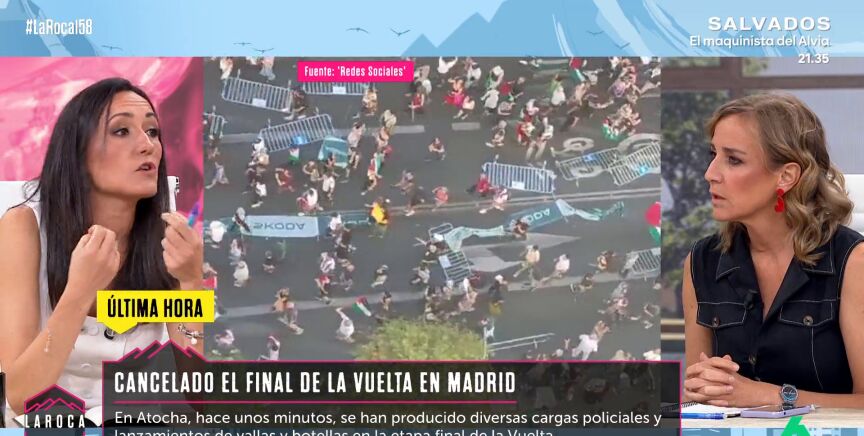 La suspensión de la última etapa de La Vuelta en Madrid, a raíz de las protestas propalestinas, provocó un fuerte debate en La Roca. Ana Martín y Tania Sánchez confrontaron sus opiniones sobre los movimientos sociales detrás de las manifestaciones.