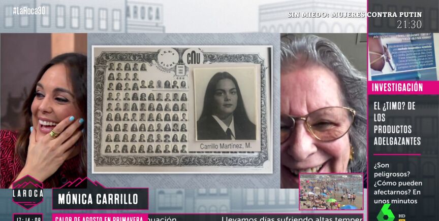 La maestra que marcó la juventud de Mónica Carrillo ha 'sacado a la luz' su foto de la orla del instituto, sobre la que la propia periodista ha bromeado en La Roca.