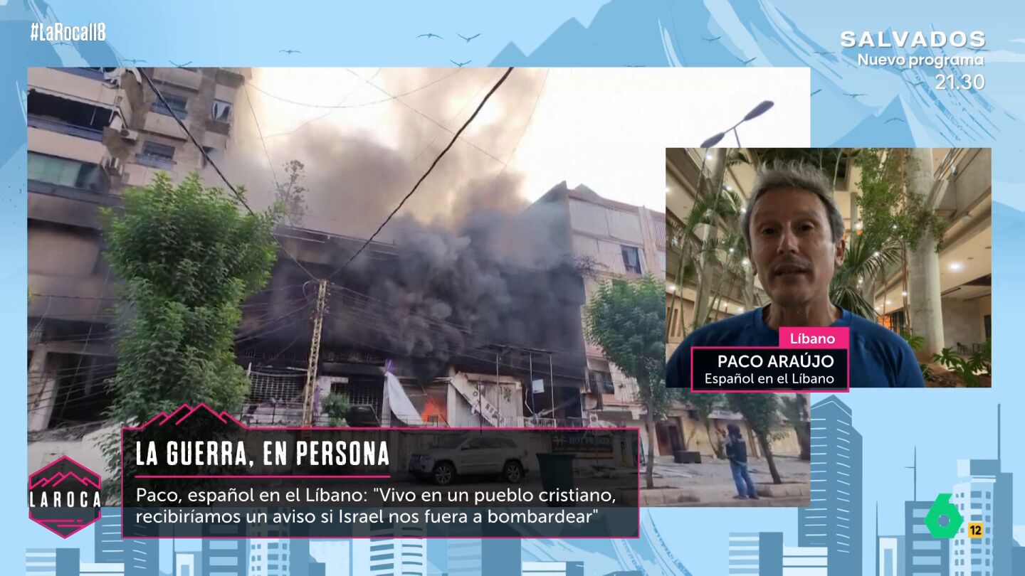Paco Araújo es un español residente en Líbano, vive cerca de la capital Beirut, concretamente a 25 kilómetros al sur de la capital. "La Embajada nos avisó con un día de antelación para dar respuesta en 20 minutos, casi no nos dio tiempo ni a coger los pasaportes. Por eso decidimos quedarnos", manifiesta en esta conexión con La Roca.