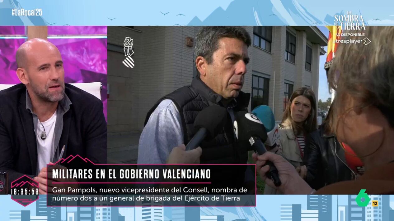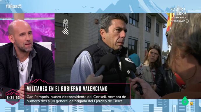 En la mesa de actualidad de La Roca, los colaboradores del programa comentaron la decisión del presidente de la Comunidad Valenciana, Carlos Mazón, de nombrar a Gan Pampols, exmilitar, como nuevo vicepresidente del Consell.